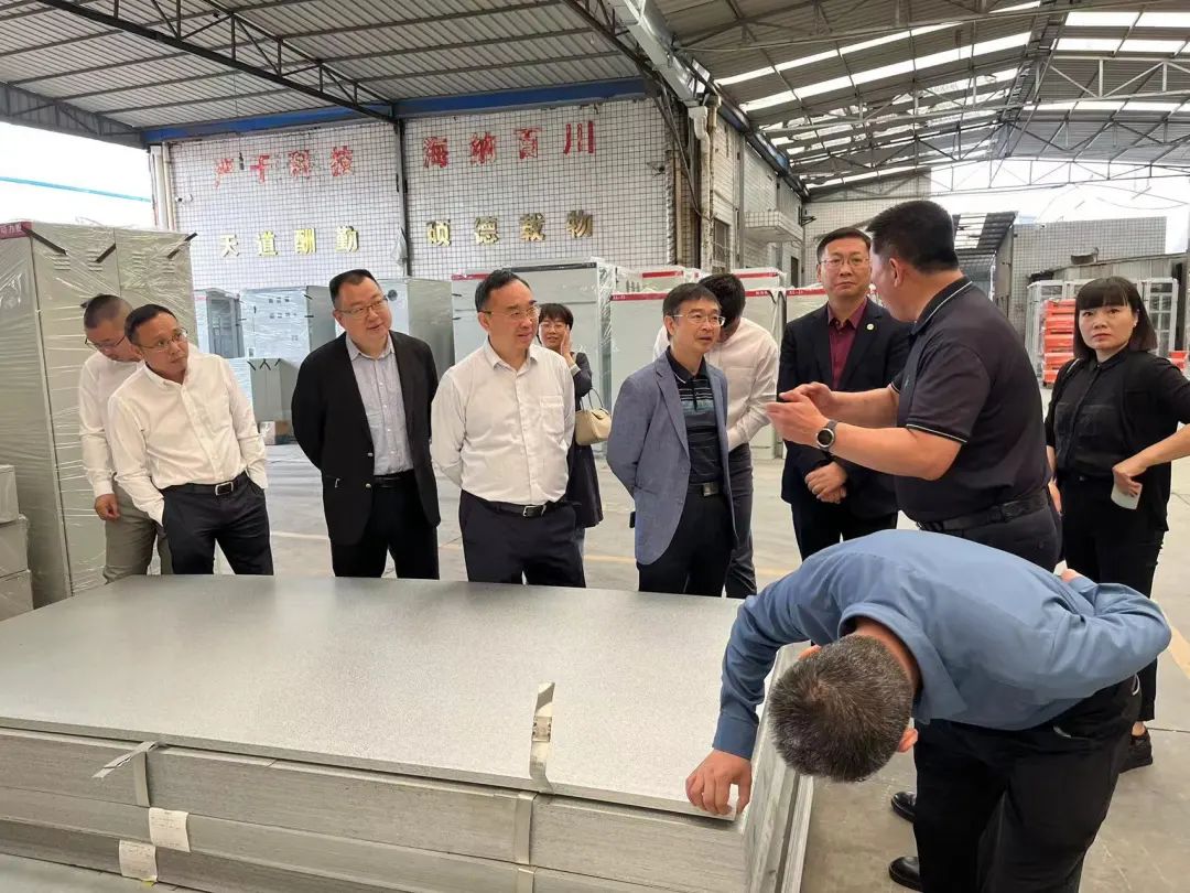 随后,何会长带领一行人前往四川天硕电气设备有限公司进行参观学习,在公司总经理王志中的带领下,参观了该企业。四川天硕电气是集创新、研发、设计、生产、销售、售后服务于一体的新兴企业,现生产经营面积达20000㎡。公司主要从事生产和销售高低压配电箱柜、防爆箱柜,主要包括:箱变、中置柜、抽屉柜、环网柜、GGD、动力箱柜、电表箱柜、燃气箱、水表箱、消防箱、信息工程箱、电缆桥架、电缆分支箱等产品,且加工各种不锈钢产品。公司产品配套齐全、应用广泛、备受用户赞誉。
