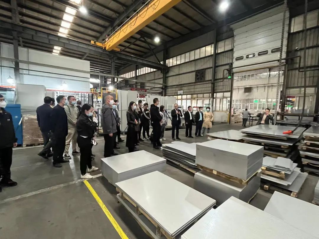 在生产车间当中,重点了解了我会会员企业南京蓝昊智能科技有限公司的折弯中心在万控公司生产线上的应用情况。
