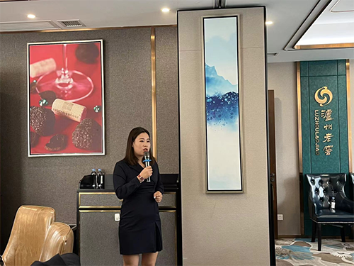 协会战略合作单位~泸州老窖(茗酿体验馆)负责人雷磊为参会代表分享了泸州老窖专门为我会会员定制的福利包。