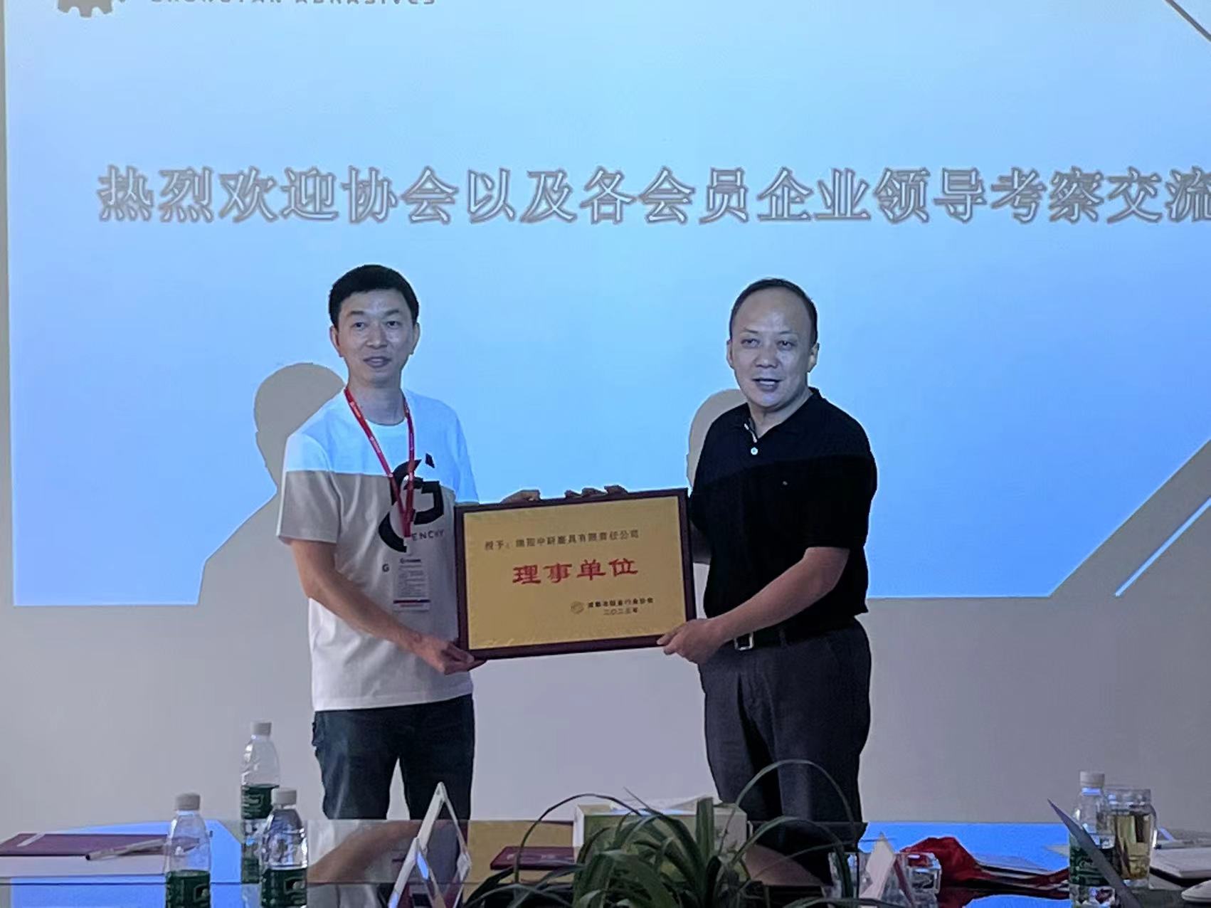 最后,由秦灿代表协会向中研磨具授予新入会会牌(理事单位)。